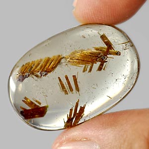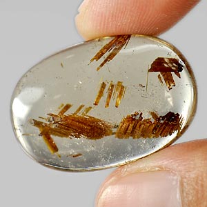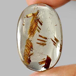 23.51 Ct. Natural White Brown Rutilated Quartz Oval Cabochon Unheated