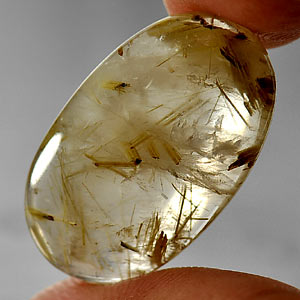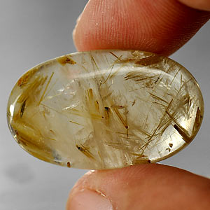 15.99 Ct. Oval Cabochon Natural White Gold Rutilated Quartz Unheated