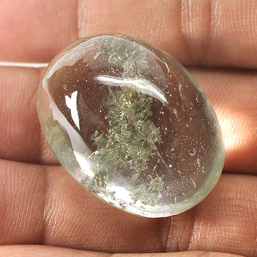 Unheated 75.89 Ct. Oval Cabochon Natural White Green Moss Quartz