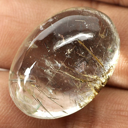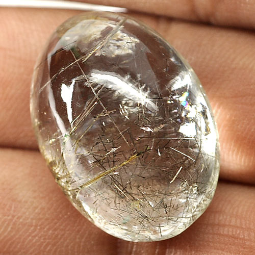 36.57 Ct. Oval Cabochon Natural White Black Rutilated Quartz Unheated