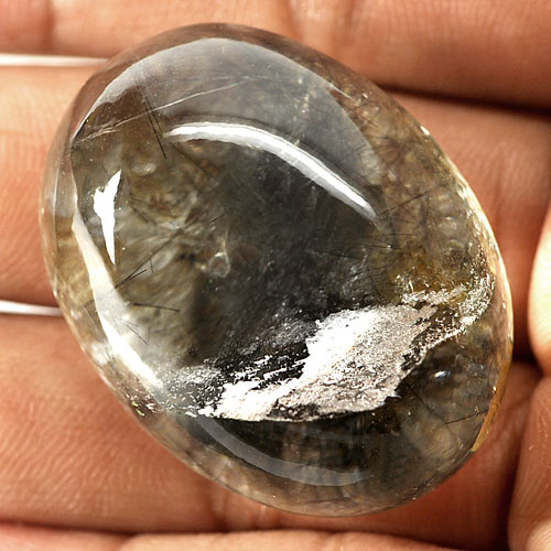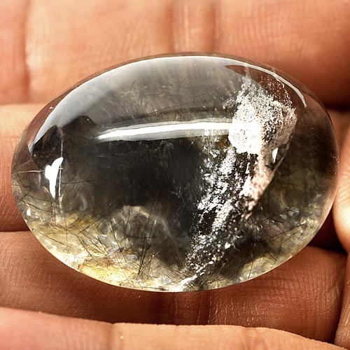 102.20 Ct. Oval Cabochon Natural White Black Moss Quartz Unheated