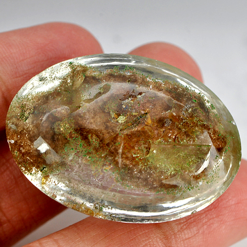77.39 Ct. Oval Cabochon Natural White Brown Moss Quartz Unheated