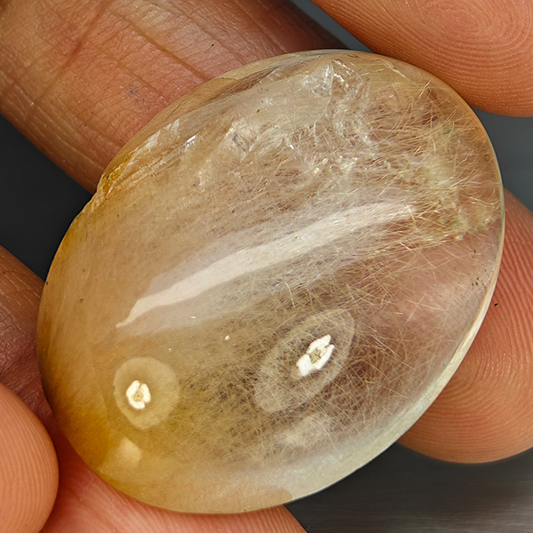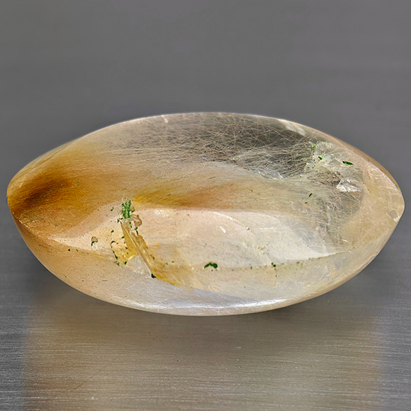 Natural White Yellow Rutilated Quartz 72.94 Ct. Oval Cabochon Shape 32 x 24 Mm Gemstone