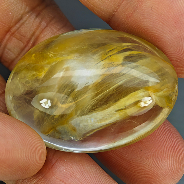Natural White Yellow Rutilated Quartz 115.58 Ct. Oval Cabochon Shape 37 x 26 Mm Gemstone