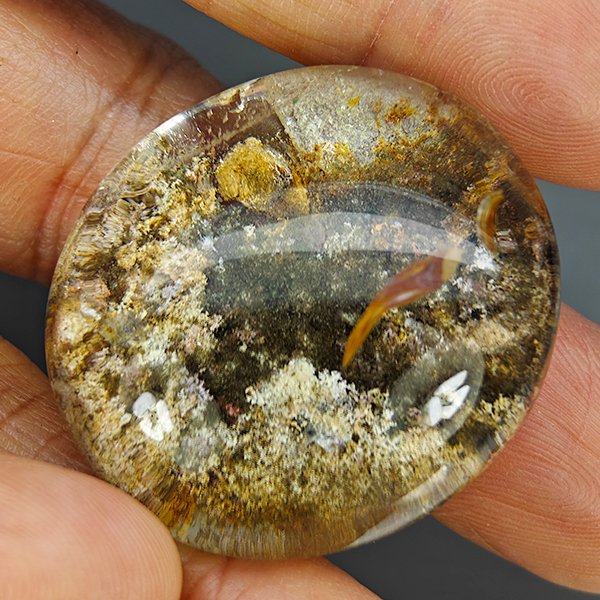 Natural White Black Rutilated Quartz 129.92 Ct. Oval Cabochon Shape 34 x 30 Mm Gemstone