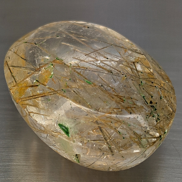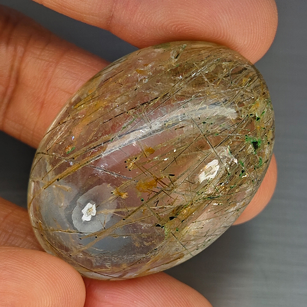 Natural White Black Rutilated Quartz 173.93 Ct. Oval Cabochon Shape 35 x 30Mm Gemstone From Thailand