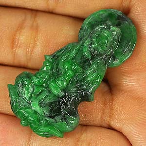 Unheated 45.31 Ct. Natural Green Guan Yin Carving Jade Pendant