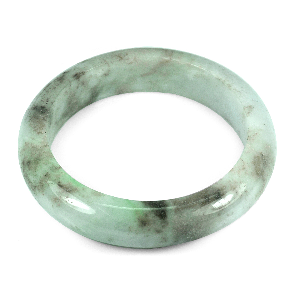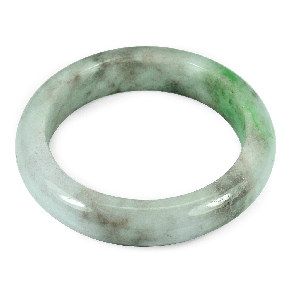 348.36 Ct. Size 75x57x15 Mm. Natural Gemstone White Green Jade Bangle Unheated
