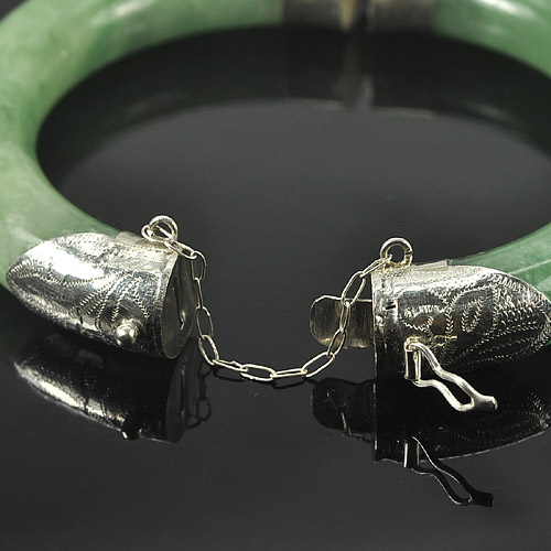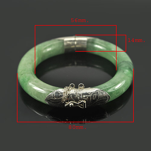 412.89 Ct. Attractive Natural Green Jade Silver Bangle Size 80 Mm.