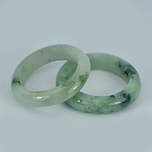 White Green Rings Jade Sz 5 Unheated 21.86 Ct. 2 Pcs. Round Shape Natural Gems