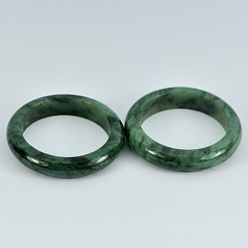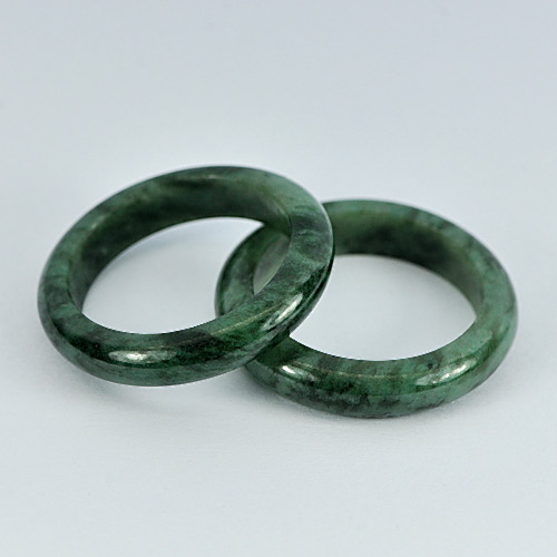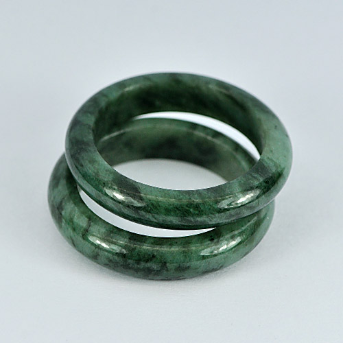 Green Black Rings Jade Size 7 Unheated 22.87 Ct. 2 Pcs. Round Natural Gemstones