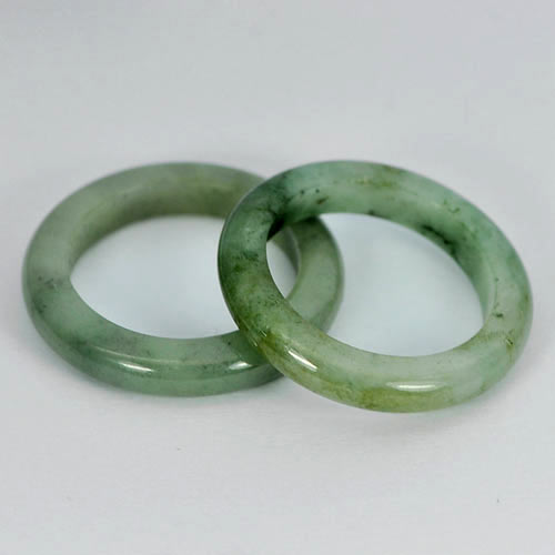 26.15 Ct. 2 Pcs. Round Natural White Green Rings Jade Size 7 Thailand