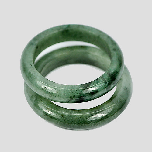 Round White Green Rings Jade Size 7 Natural Gemstones 25.60 Ct. 2 Pcs. Unheated