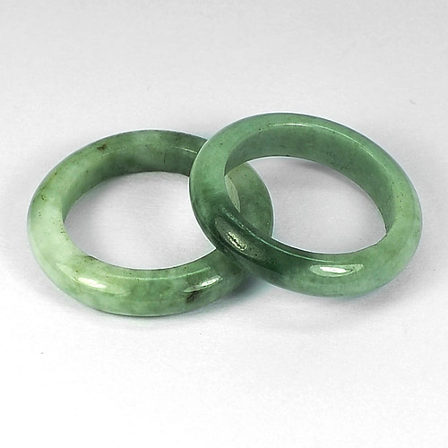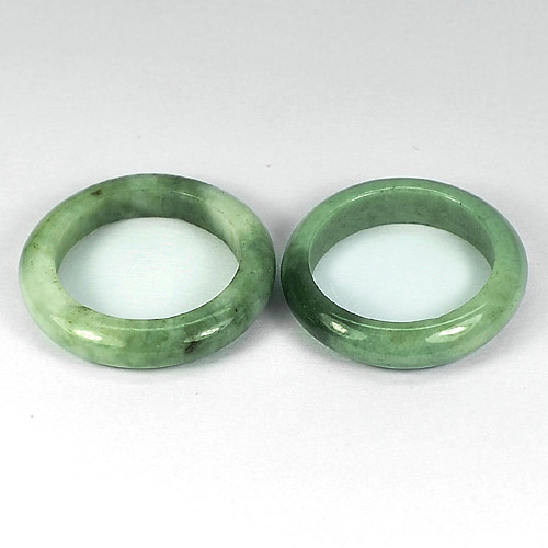 White Green Rings Jade Sz 7.5 Natural Gemstones 26.21 Ct. 2 Pcs. Round Shape