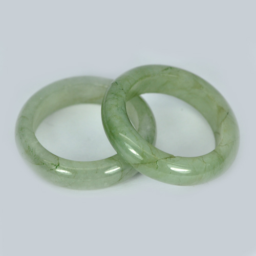 White Green Rings Jade Size 7 to 7.5 Round Shape 32.38 Ct. 2 Pcs. Natural Gems
