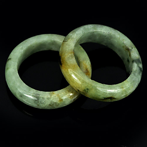 Size 7 White Green Honey Rings Jade 27.30 Ct. 2 Pcs. Natural Gemstones
