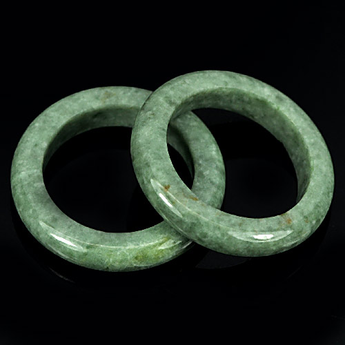 30.46 Ct. 2 Pcs. Round Natural White Green Rings Jade Sz 7 Unheated
