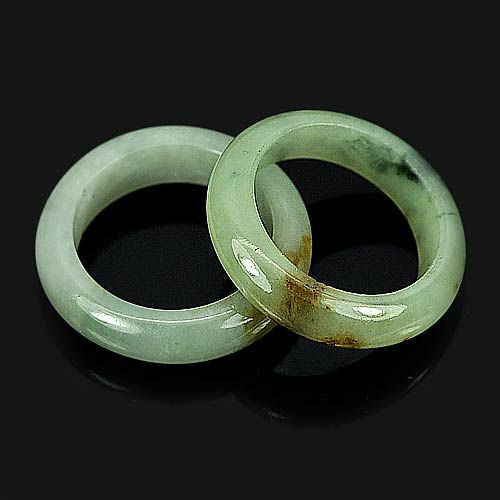 White Green Honey Rings Jade Sz 5 Unheated 25.37 Ct. 2 Pcs. Round Natural Gems