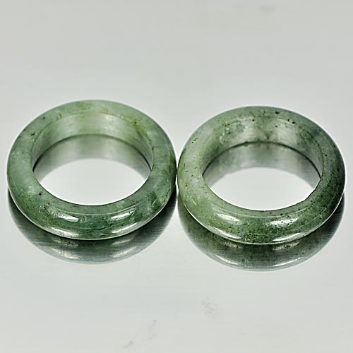 Size 5.5 Round Natural Gems White Green Rings Jade 26.29 Ct. 2 Pcs.