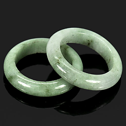 22.60 Ct. 2 Pcs. Beauteous Natural Gems White Green Rings Jade Size 5.5