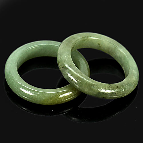 21.64 Ct. 2 Pcs. Natural Gems White Green Honey Rings Jade Size 5.5