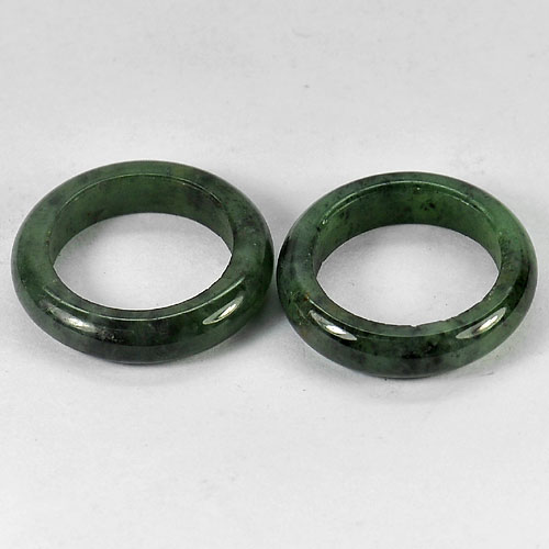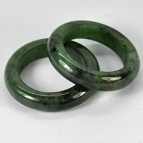 Size 7 Natural Chinese Green Black Rings Jadeite Jade 34.64 Ct. 2 Pcs. Unheated