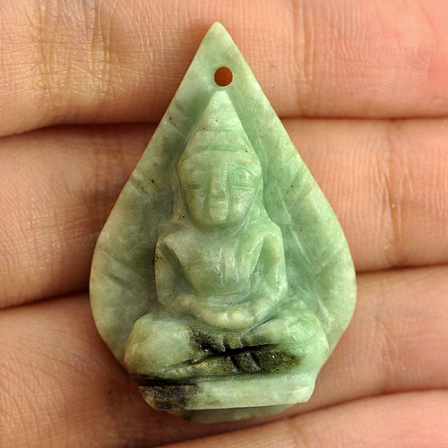 Unheated 44.35 Ct. Natural Gemstone White Green Jade Buddha Carving Thailand