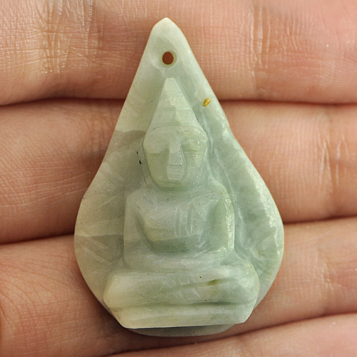 43.48 Ct. Natural White Green Jade Buddha Carving Unheated From Thailand