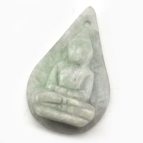 40.90 Ct. Beautiful Natural White Green Jade Buddha Carving Unheated