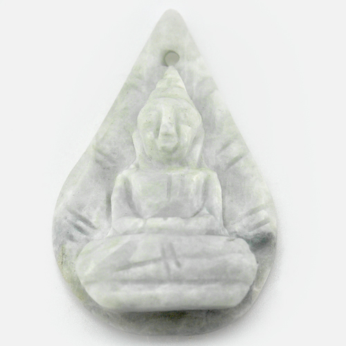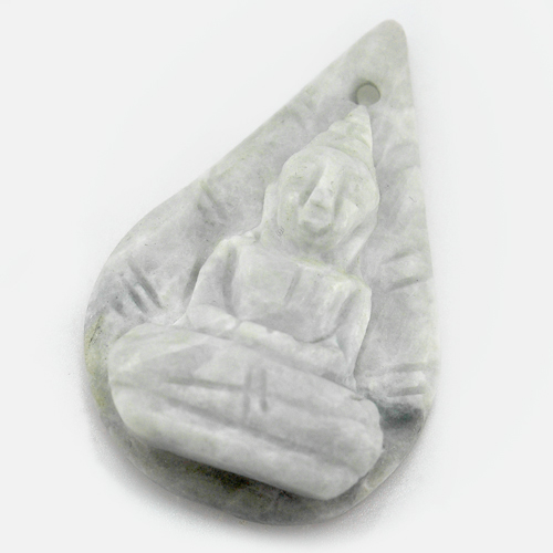 White Green Jade Buddha Carving with Drilled Pendant 57.43 Ct. Natural Gemstone