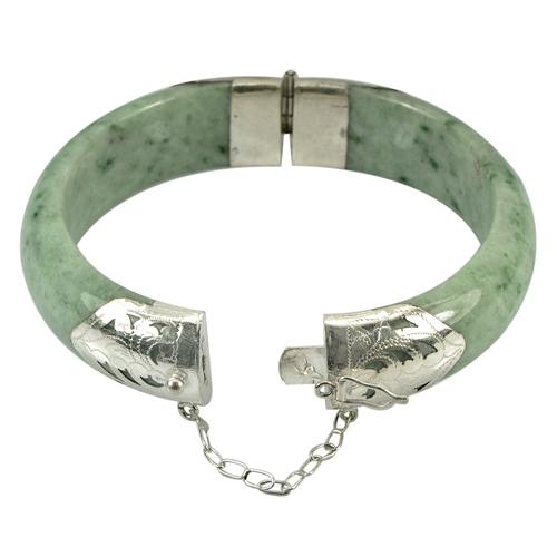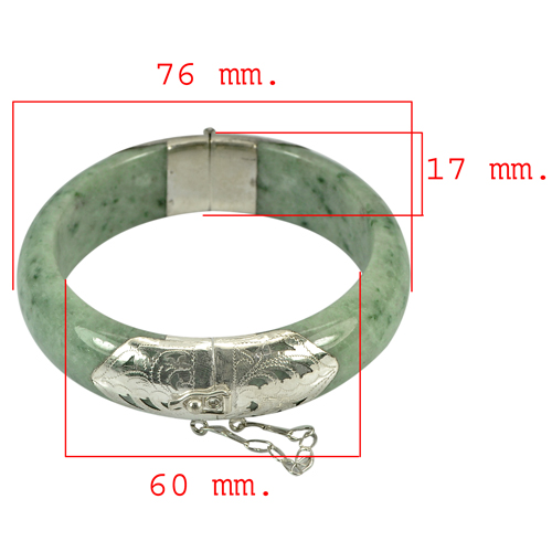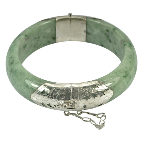 Unheated 404.24 Ct. Natural Gem Green Jade with Silver Bangle 76 x 60 x 17 Mm.