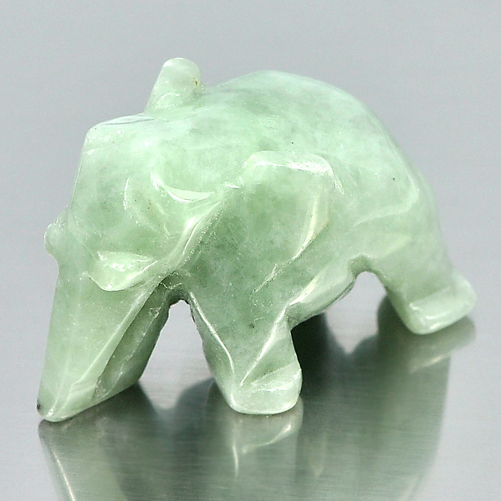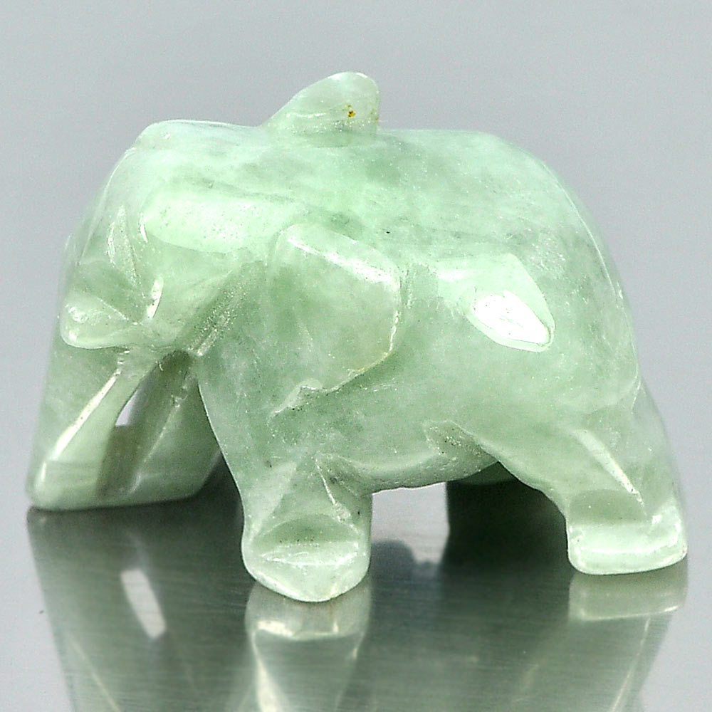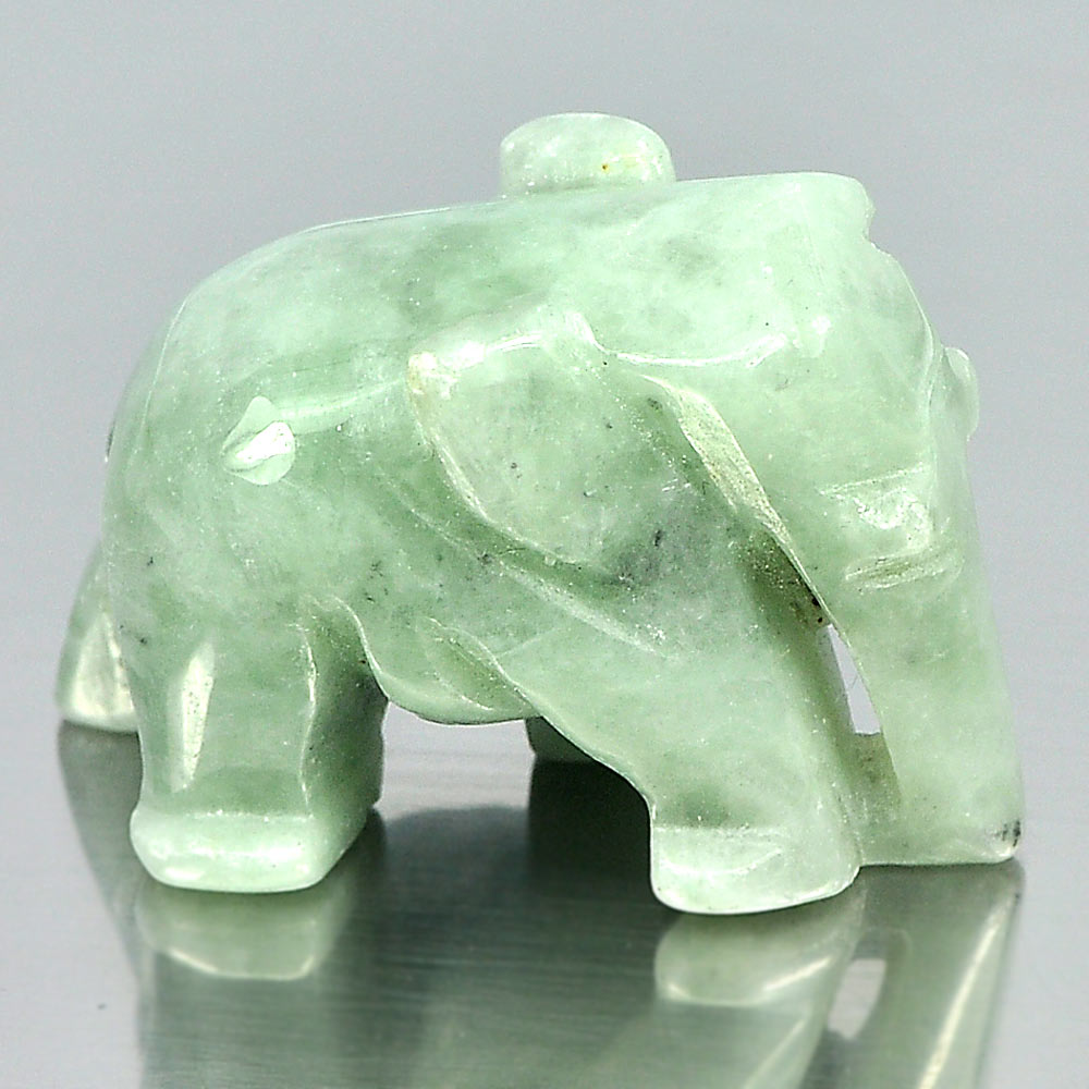 Green White Jade Elephant Carving 29 x 20 x 16 Mm. 60.86 Ct. Natural Gemstone