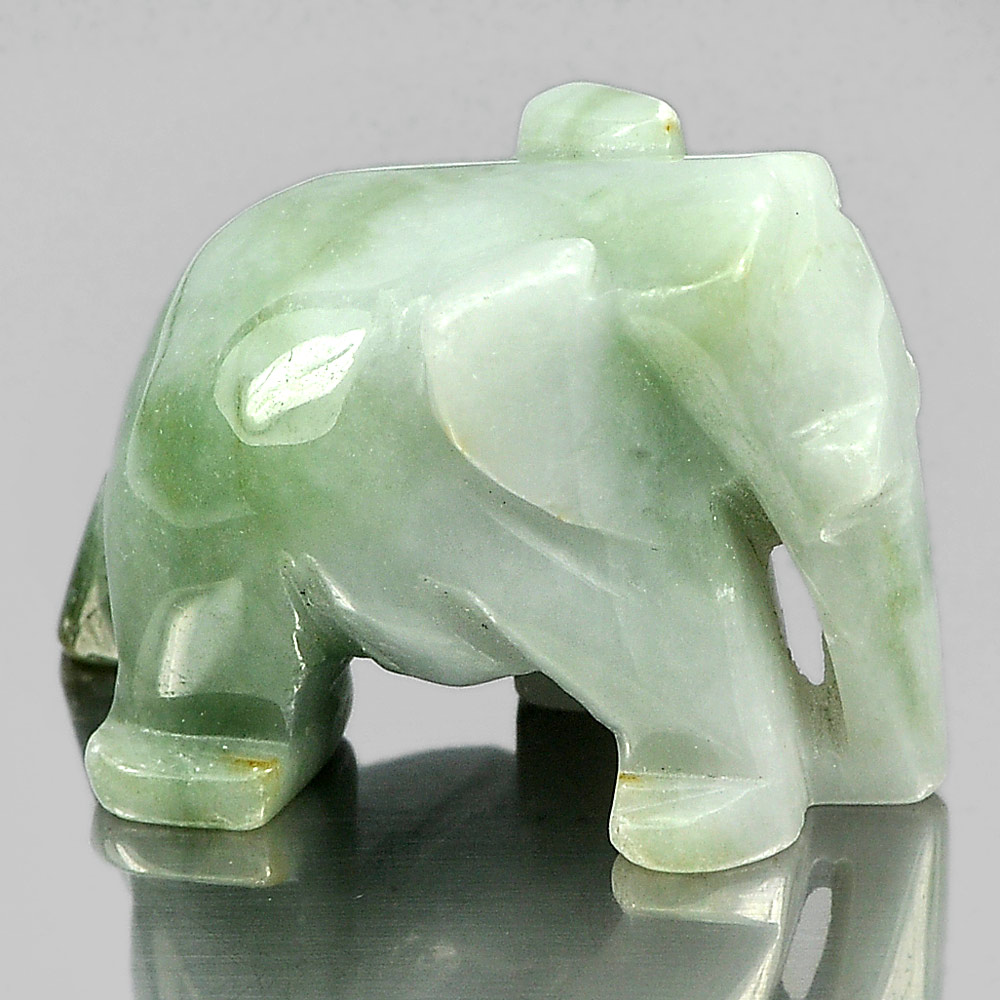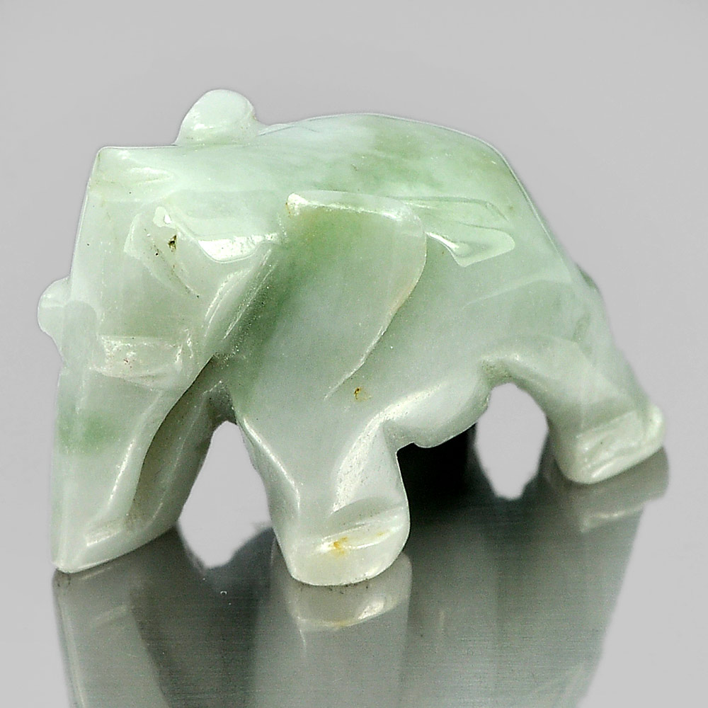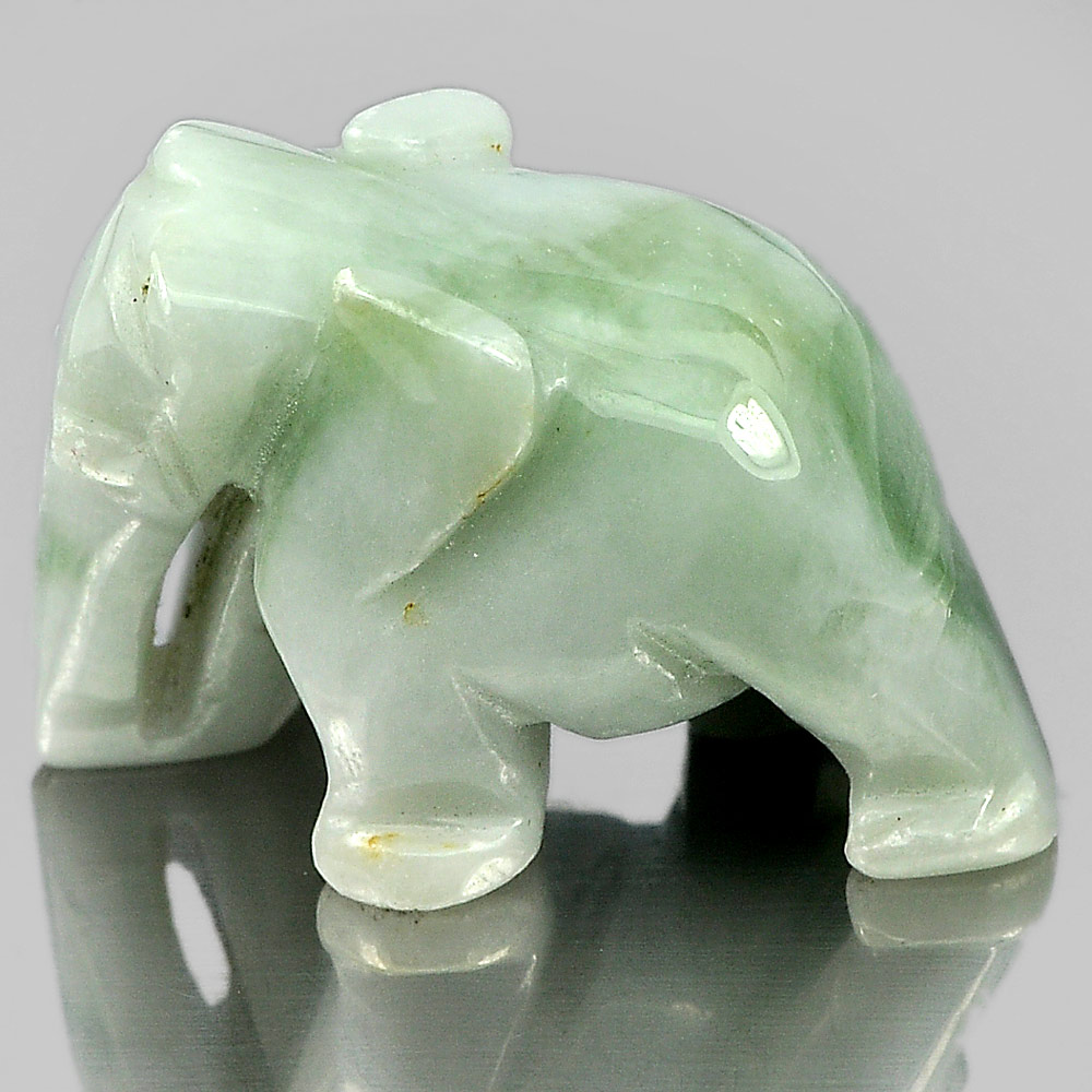 Green White Jade Elephant Carving 29 x 20 Mm. 76.08 Ct.Natural Gemstone Unheated