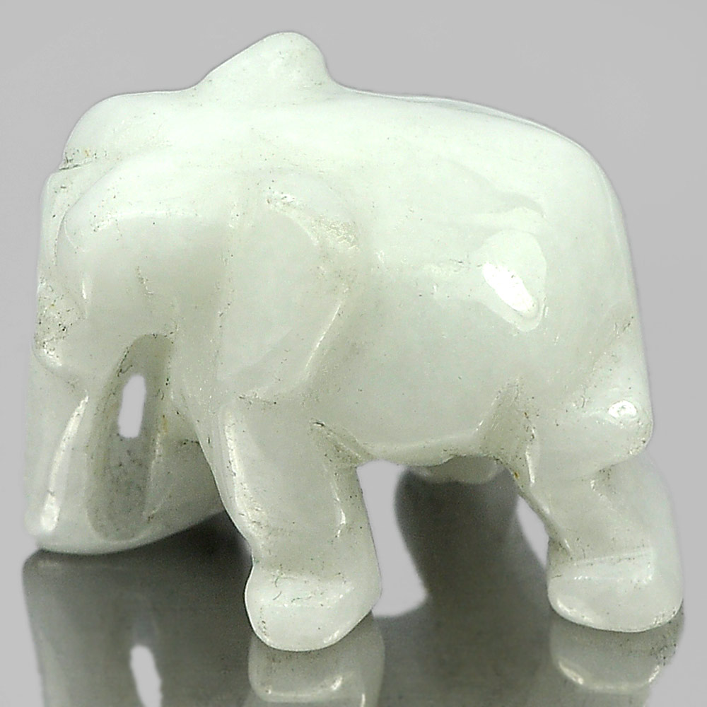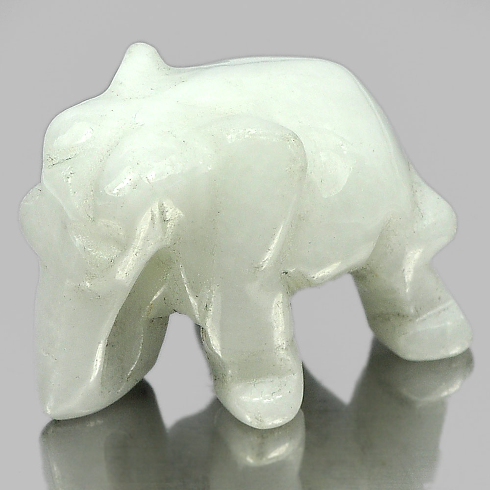 Green White Jade Elephant Carving 24 x 18 Mm. 55.06 Ct. Natural Gemstone