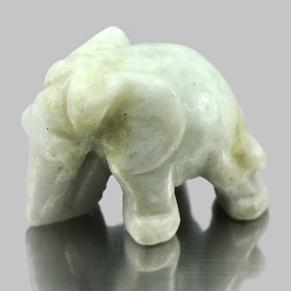 Green White Jade Elephant Carving 62.59 Ct. Natural Gemstone Unheated