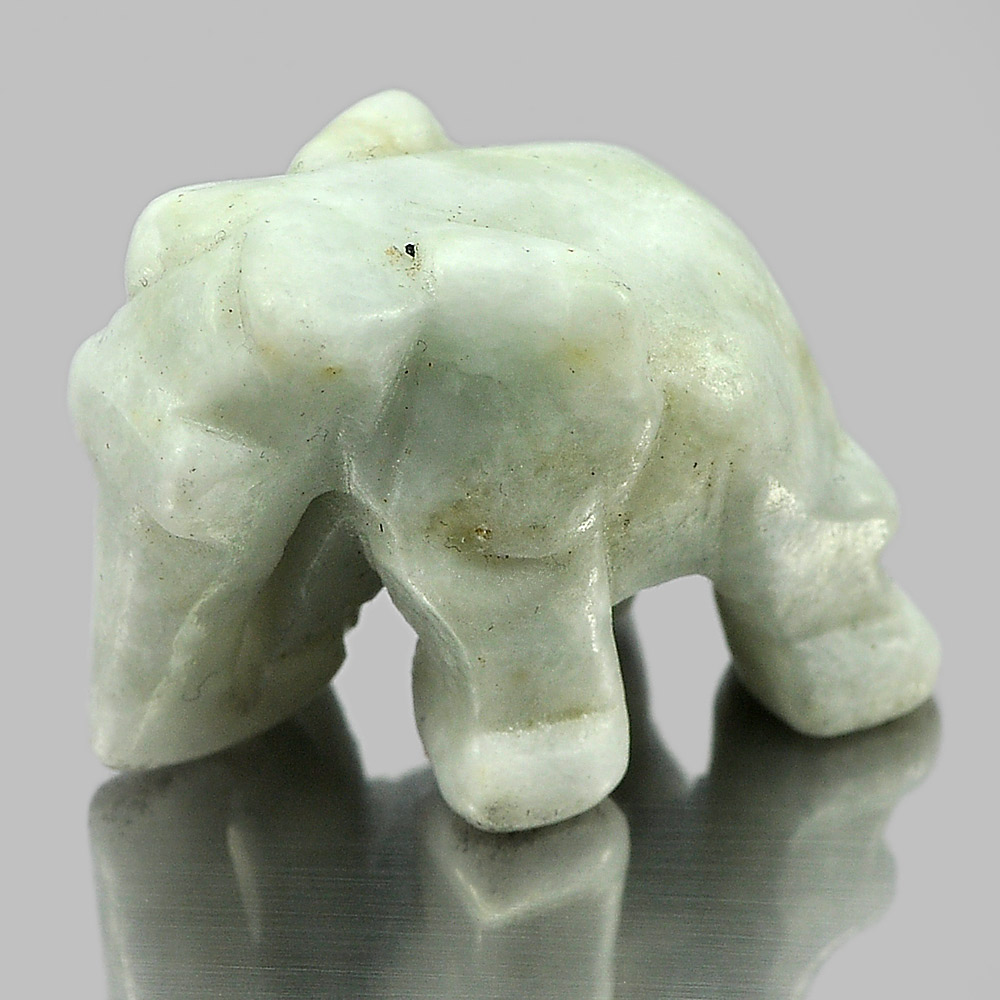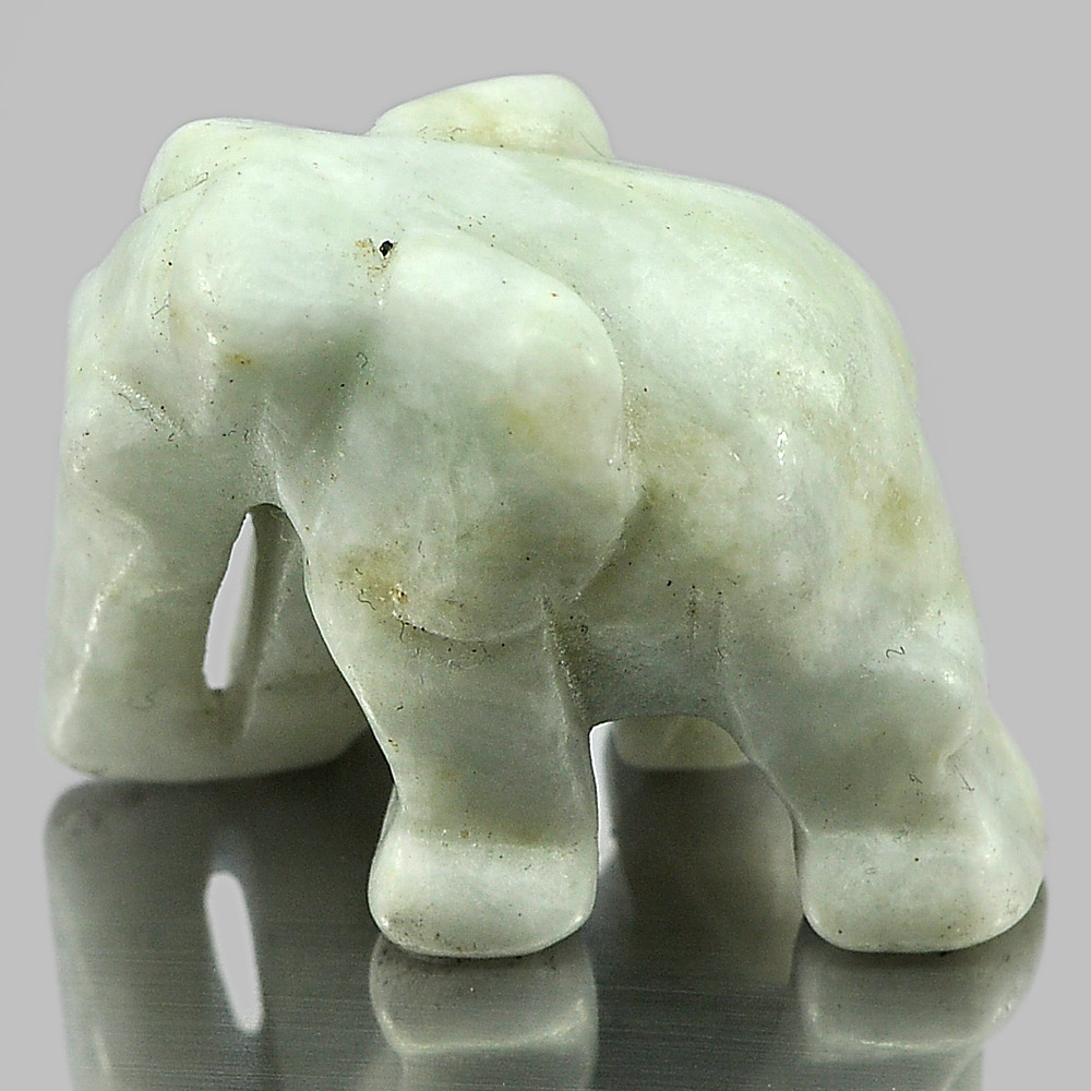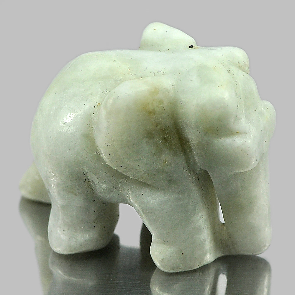 Green White Jade Elephant Carving 26 x 20 Mm.Unheated 59.14 Ct. Natural Gemstone