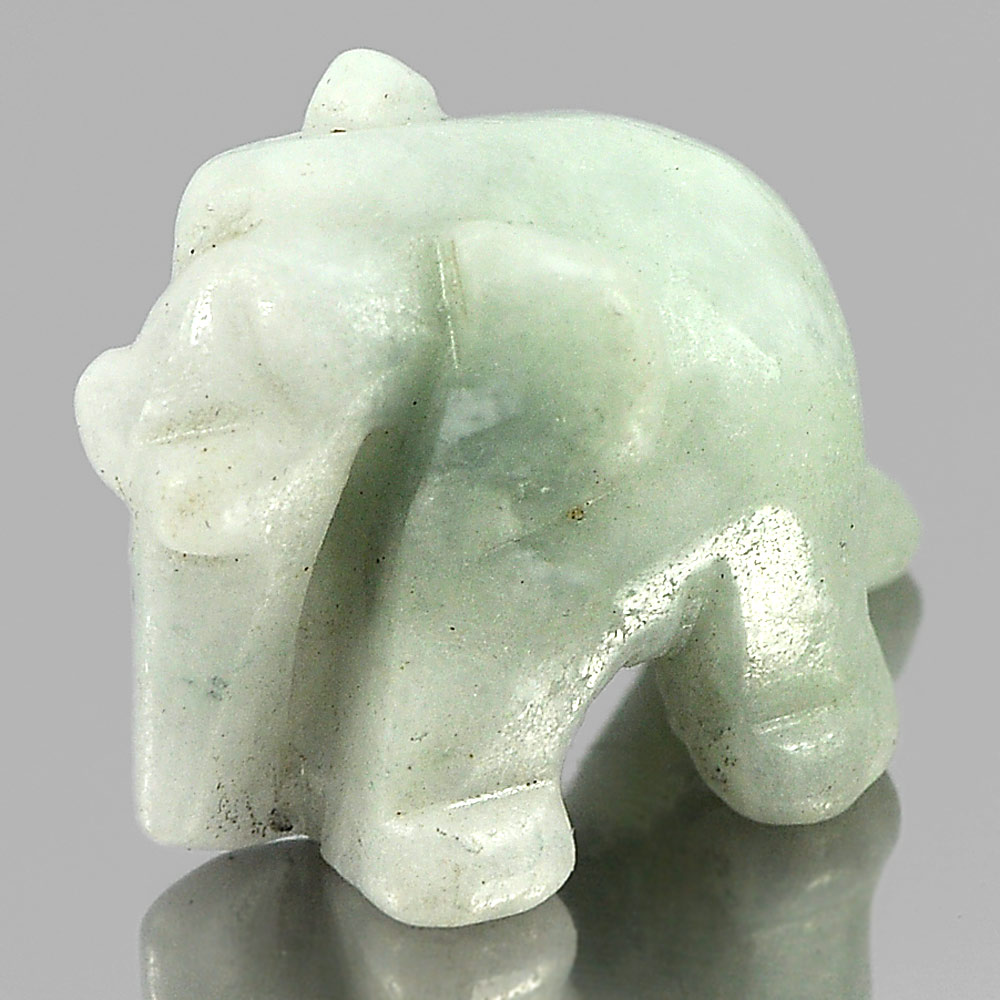 Green White Jade Elephant Carving 26 x 19 Mm.Unheated 51.62 Ct. Natural Gemstone