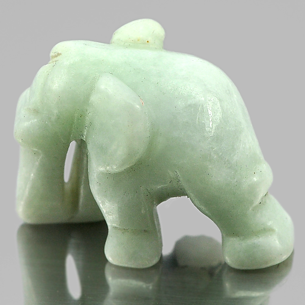 Green White Jade Elephant Carving 25 x 19 Mm.Unheated 46.11 Ct. Natural Gemstone