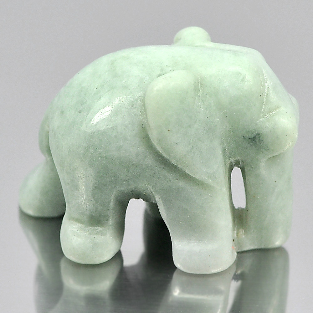 Green White Jade Elephant Carving 25 x 18 Mm. 46.43 Ct.Natural Gemstone Unheated