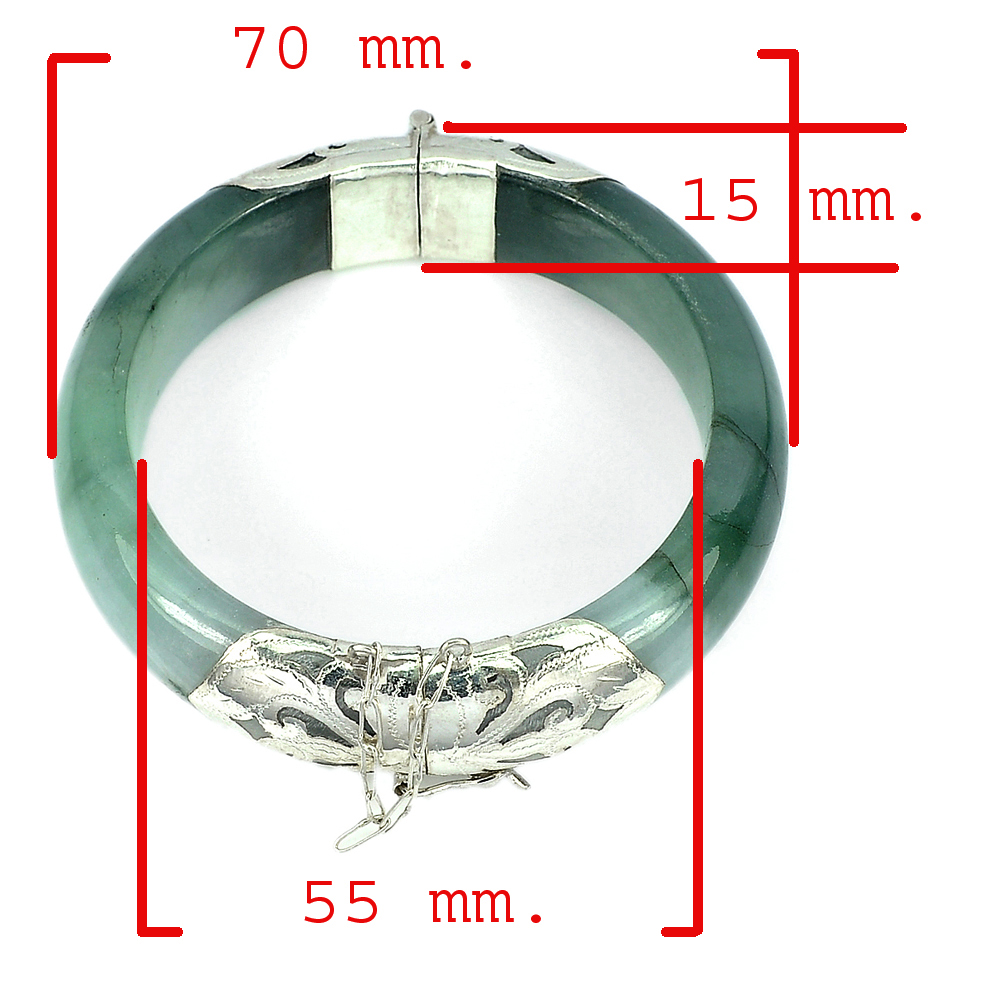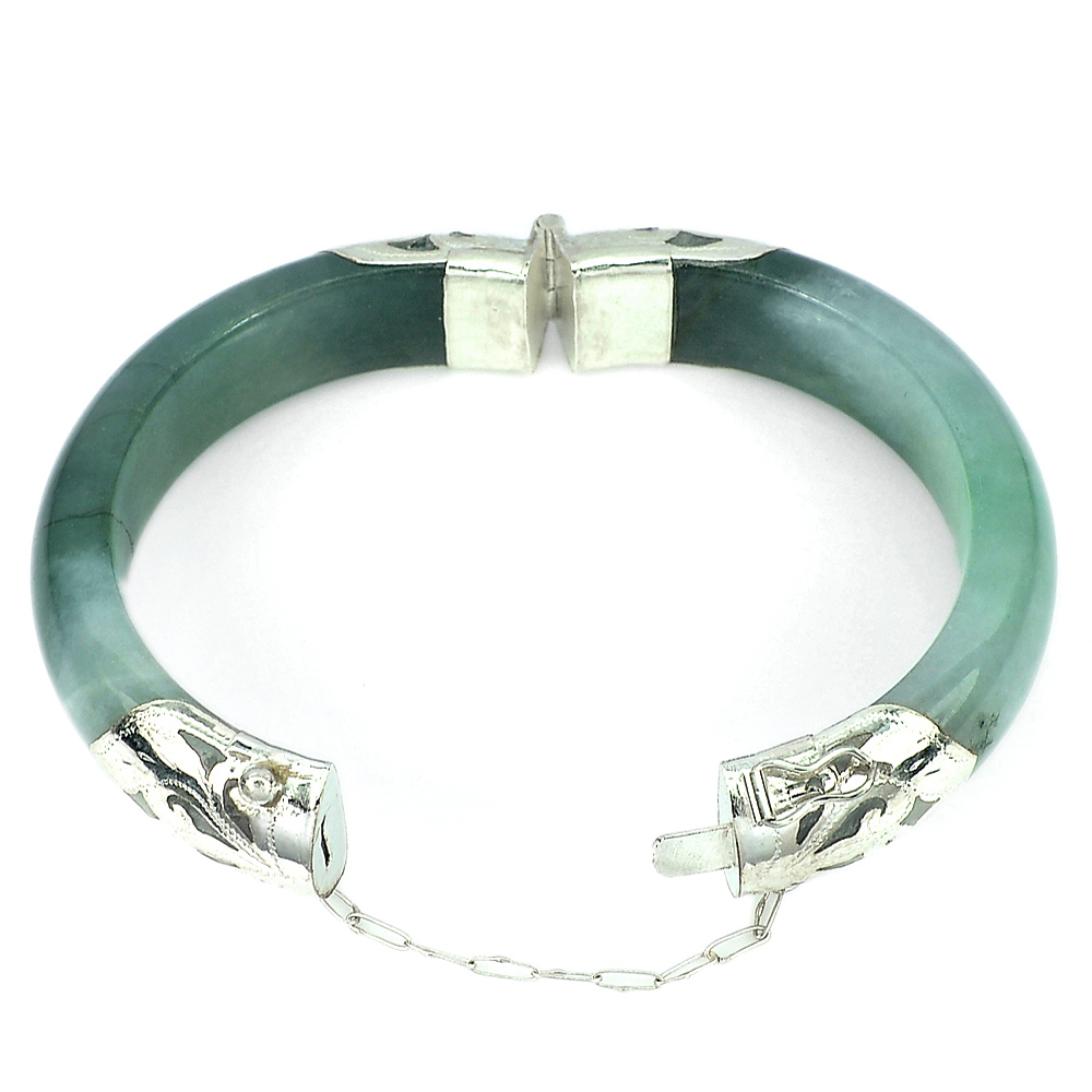 Unheated 323.79 Ct. Lovely Natural Green Jade Bangle with Silver Diameter 55 mm.