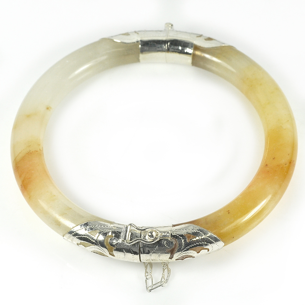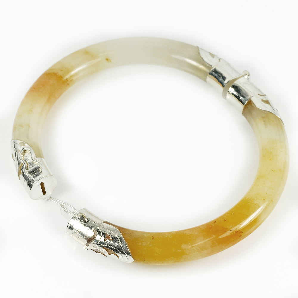 Multi-Color Jade Bangle with Silver 215.28 Ct. Diameter 65 Mm.Natural Gemstone