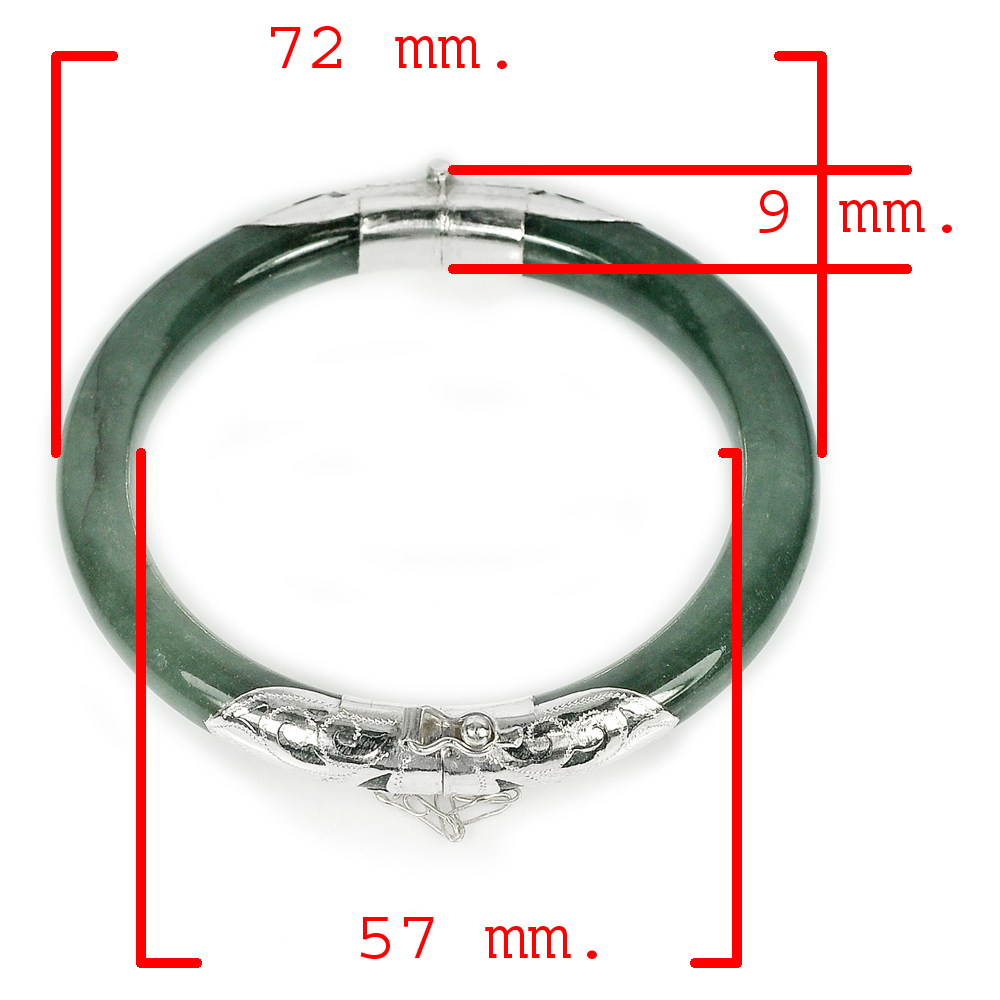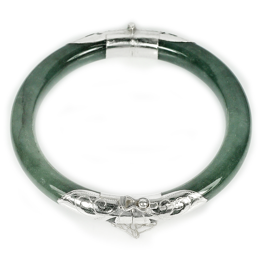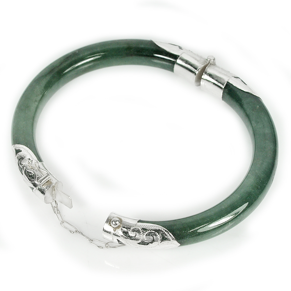 Unheated 179.80 Ct.Diameter 57 Mm.Natural Gemstone Green Jade Bangle with Silver