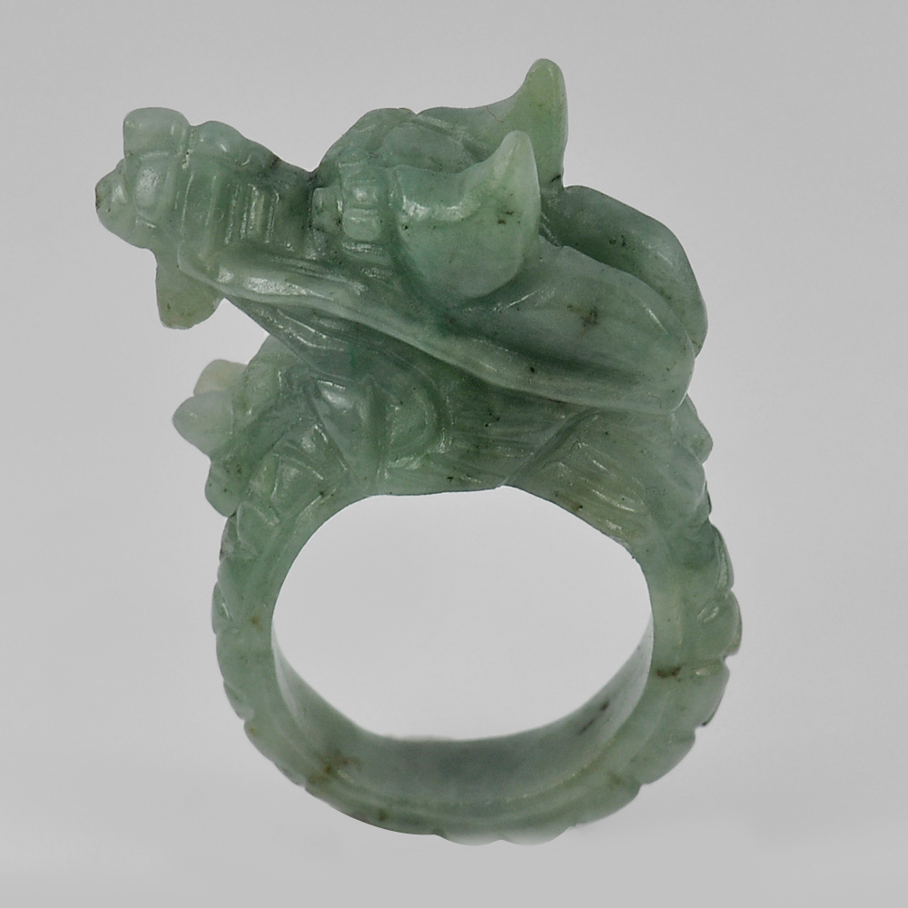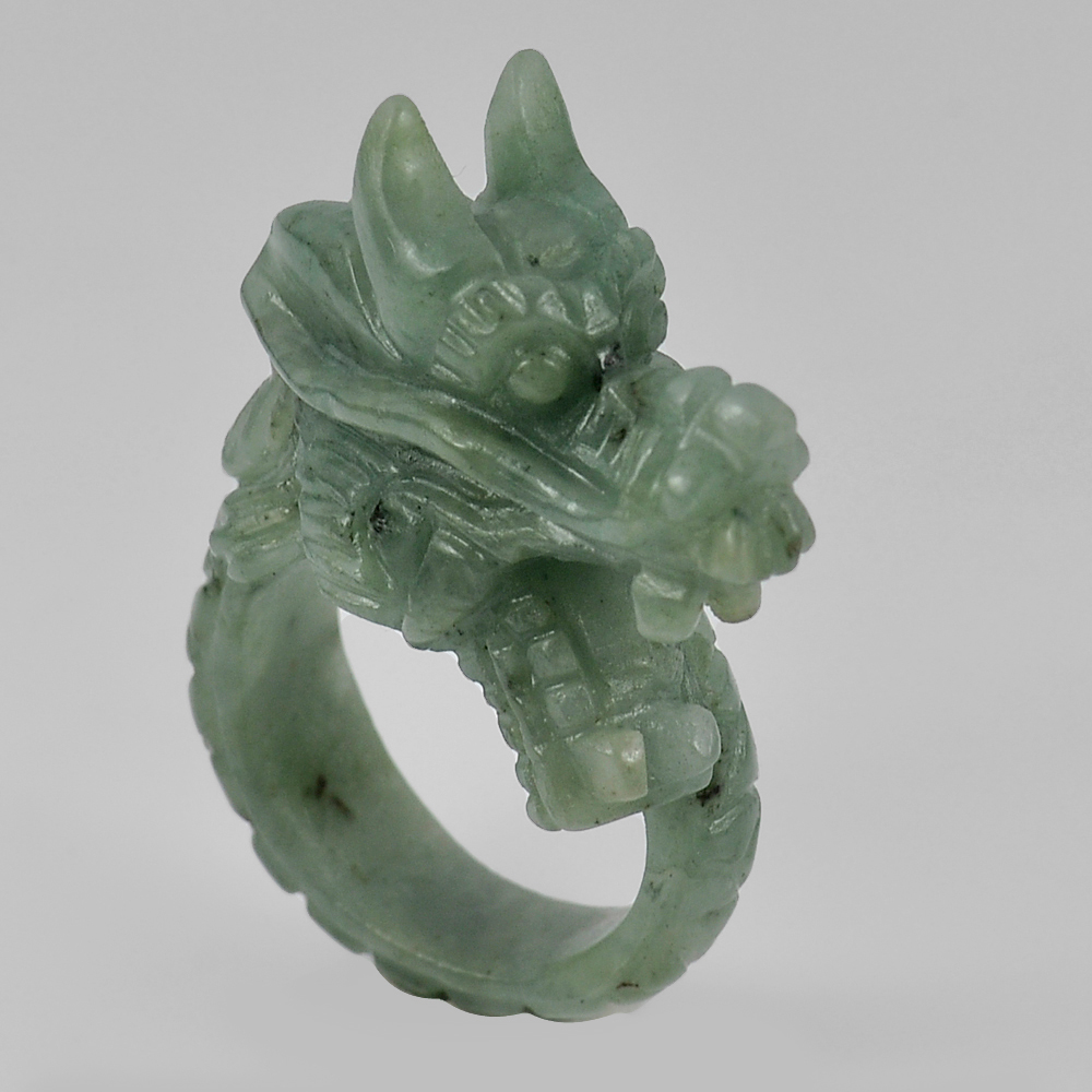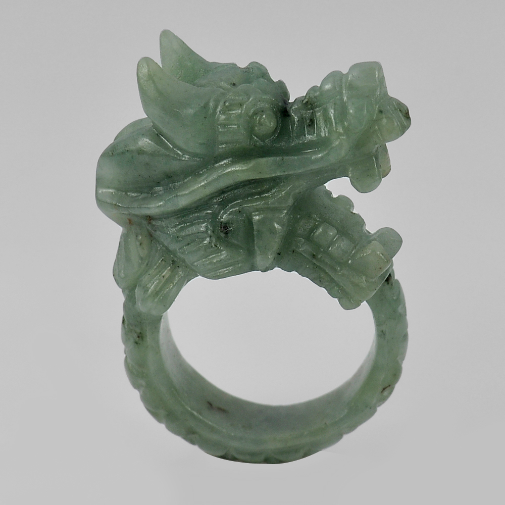 Green Jade Dragon 86.16 Ct. Ring Size 10 Natural Gemstone Unheated