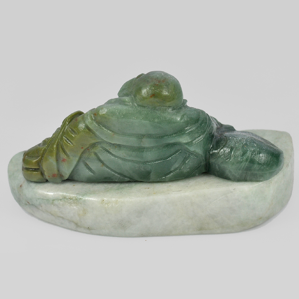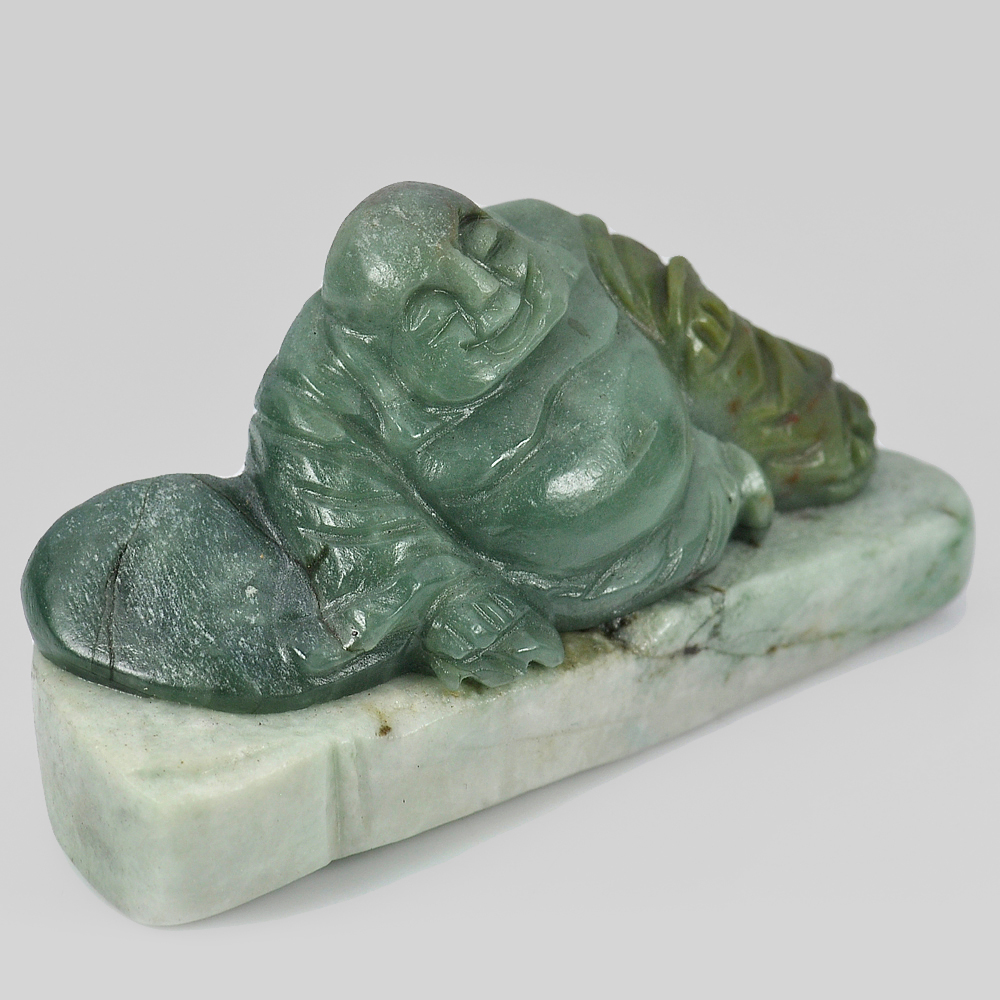 Green White Jade Happy Smile Buddha Carving 800 Ct. Natural Gemstone Unheated