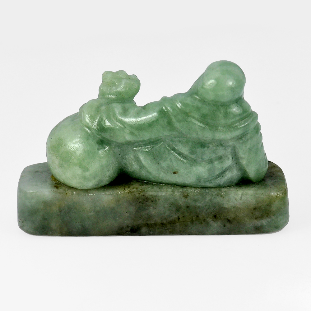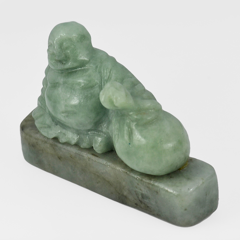 Green Jade Happy Buddha Carving 54 x 37 Mm. 255.13 Ct. Natural Gemstone Unheated