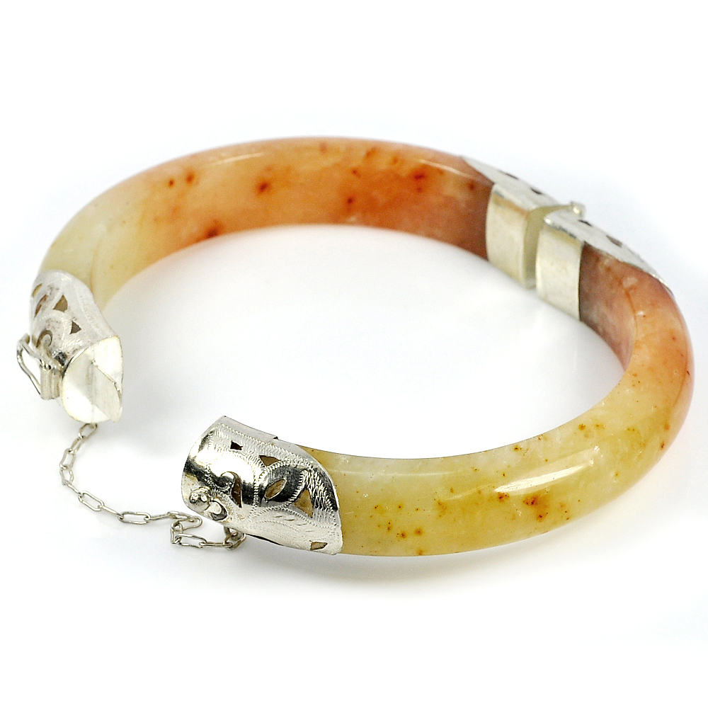 300 Ct. Natural Gemstone Brown Honey Jade Bangle with Silver Diameter 65 mm.
