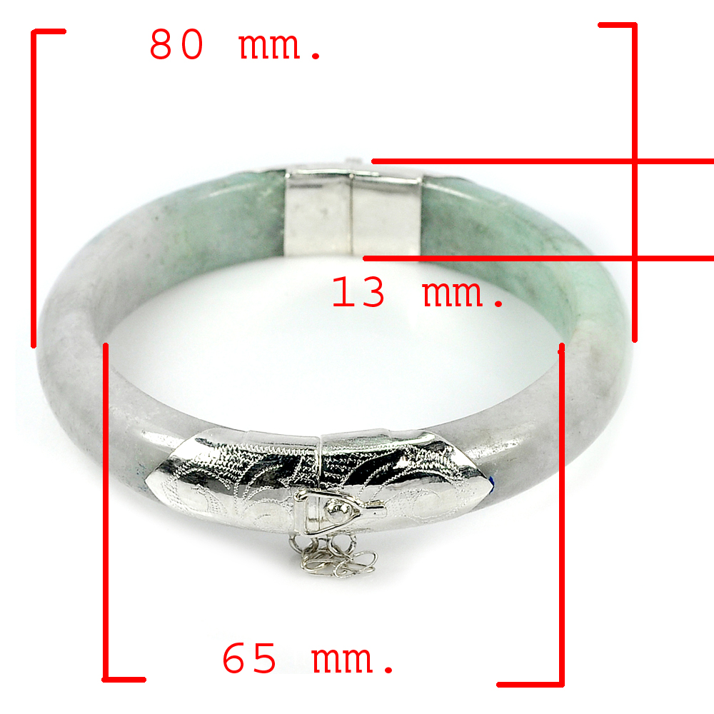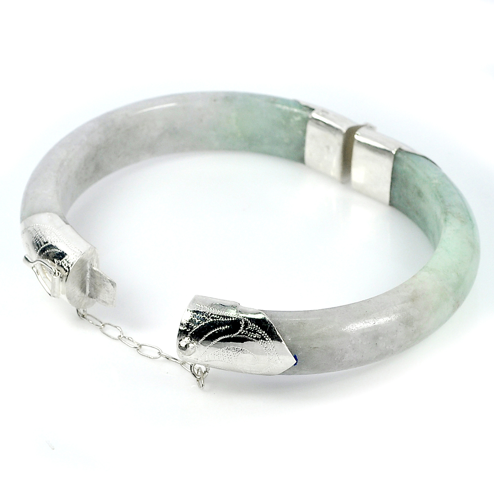 325 Ct. Natural Gemstone Multi-Color Jade Bangle with Silver Diameter 65 mm.
