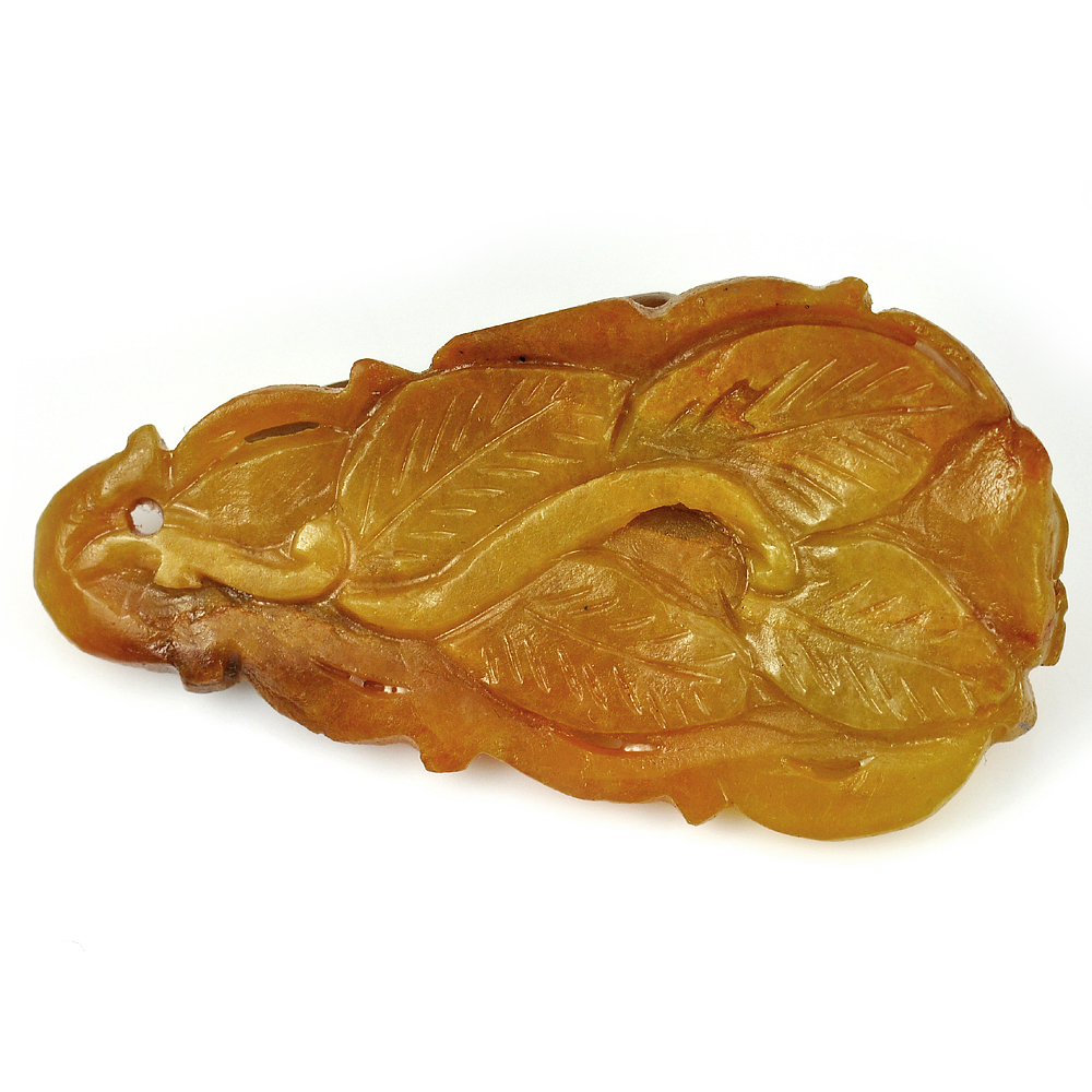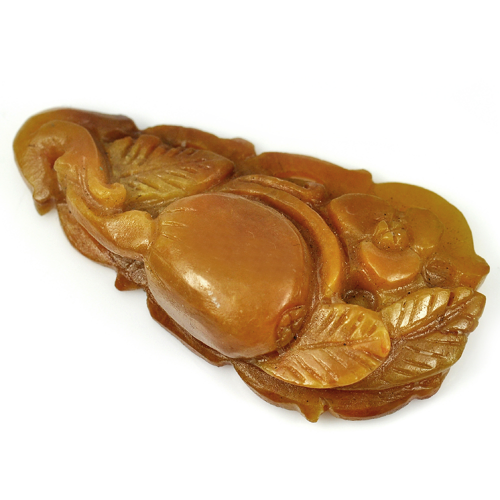 Brown Honey Jade 87.59 Ct. Fruit Carving 41 x 22 Mm. Natural Gemstone Unheated