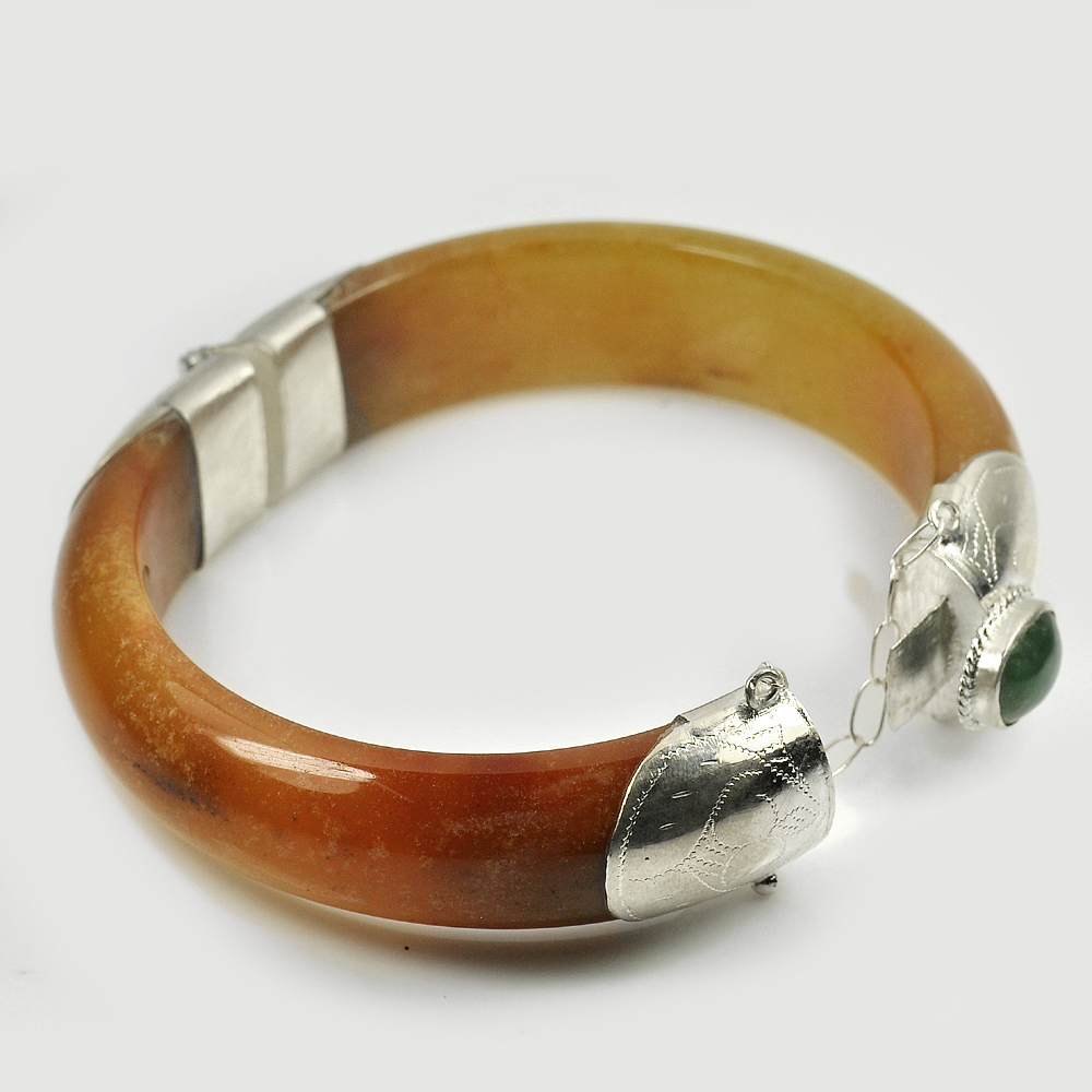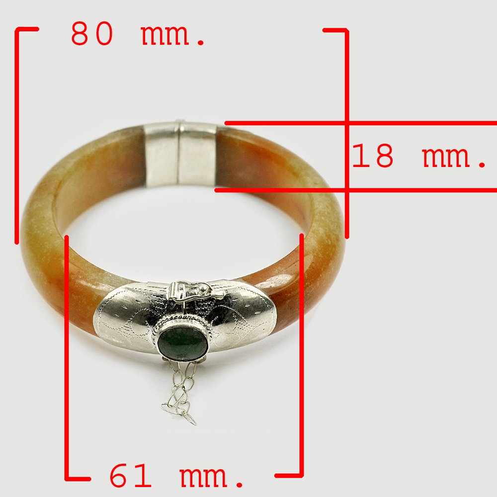 388.77 Ct. Natural Gemstone Brown Honey Jade Bangle with Silver Size80x61x18Mm.