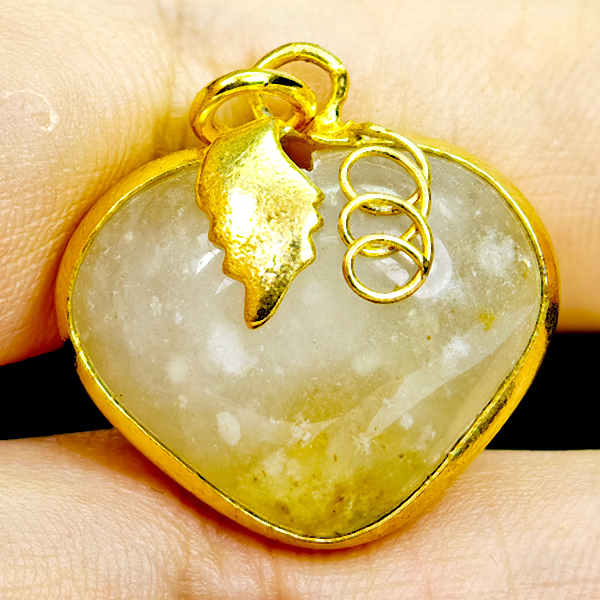 Natural Multi-Color Jade 35.94 Ct. Heart Nickel Pendant 22 x 21 Mm. Gemstone